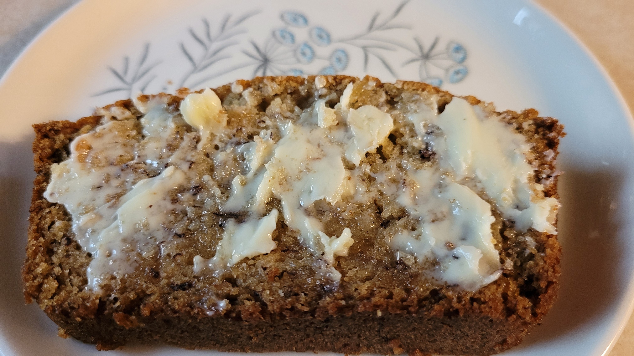 I hadn't had banana bread in years. There are people in our house that are allergic to bananas, so I just didn't buy them. And then two of my kids went on a banana kick, so a weekly banana buying excursion was in order. Then someone mentioned banana bread one evening as I was getting ready for bed, and the next morning I just couldn't not bake a loaf of gluten free banana bread. And then I couldn't not put butter and a little cream cheese on it.